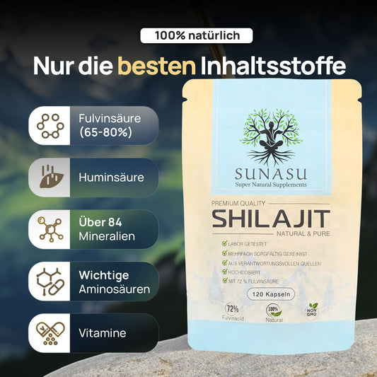 Shilajit 120 Kapseln - 500mg pro Kapsel - 72% Fulvinsäure